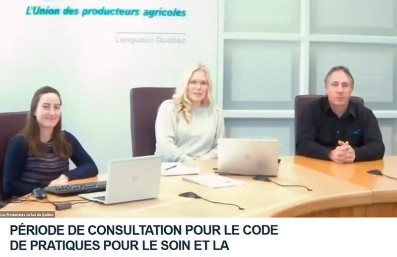 Dans le cadre de la révision du Code de pratique pour le soin et la manipulation des bovins laitiers, une consultation publique de 60 jours a été réalisée en 2022. Les Producteurs de lait du Québec ont conçu et déployé un vaste plan de communication afin de renseigner les producteurs sur les changements à venir et leurs impacts sur les fermes. L'objectif était d'informer correctement les producteurs des modifications proposées et de les inviter à s’impliquer en commentant la révision selon leur réalité. Le déploiement des actions de communication a été un réel succès puisque le 75 % des répondants à la période de consultation sont des producteurs québécois.